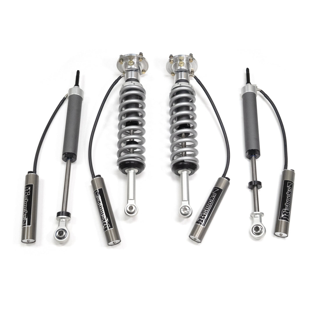 The 2024 Toyota Tacoma JRi Leveling Kit with 6-stage adjustable coilover remote reservoir shocks is designed for a 1.75" to 3" lift. The oversized remote reservoirs offer increased nitrogen area to help provide consistency, stability, and performance. Improves off-roading experience handling and daily driving.