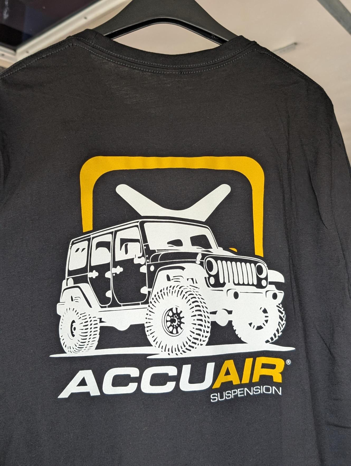 Embroidered AccuAir Icon logo on front chest for a clean, modern look